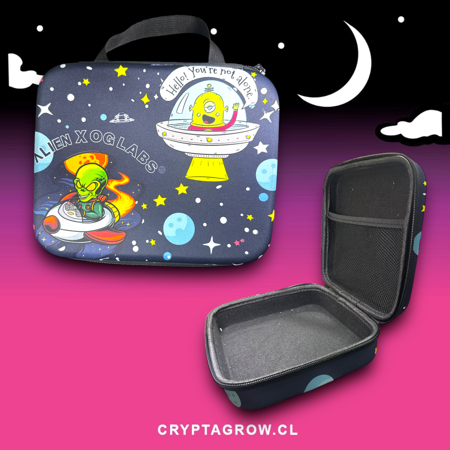 BOLSO ANTI OLOR 22X18CM, IDEAL PARA TRANSPIORTAR TODA TU PARAFERNALIA, CON DISEÑO DE OVNI Y COHETE EN EL ESPACIO. COLOR: AZUL