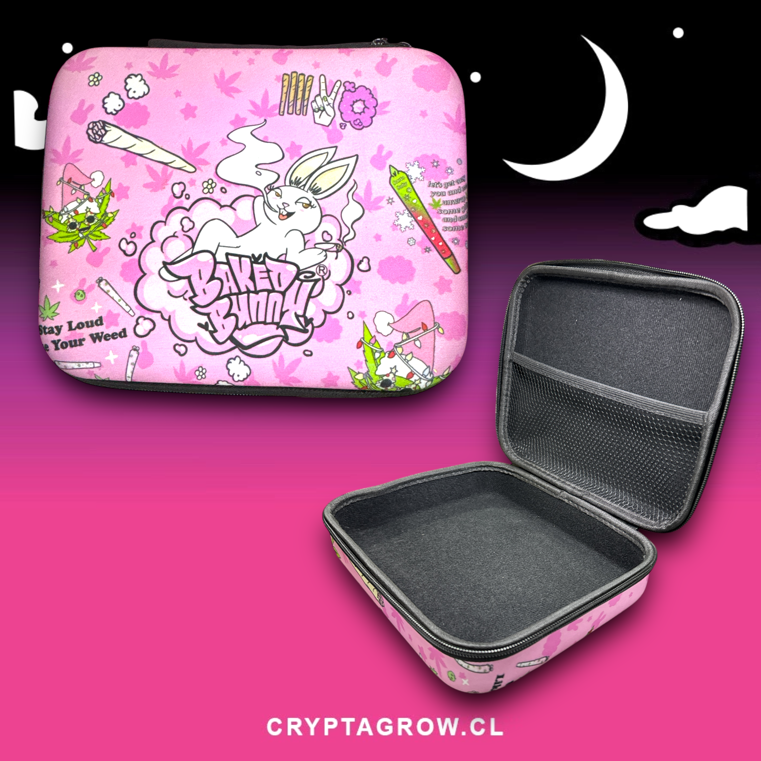 BOLSO ANTI OLOR 22X18CM, IDEAL PARA TRANSPIORTAR TODA TU PARAFERNALIA, CON DISEÑO DE CONEJO BLANCO. COLOR: NARANJO
