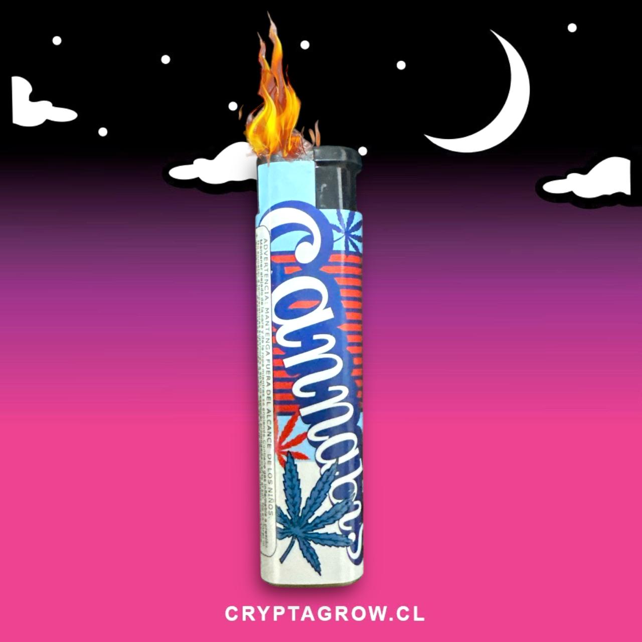 ENCENDEDOR CON LLAMA TIPO SOPLETE, CON DISEÑO DE HOJA VERDE FONDO AMARILLO