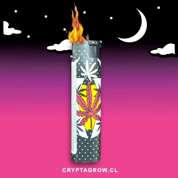 ENCENDEDOR CON LLAMA TIPO SOPLETE, CON DISEÑO DE HOJA AZUL FONDO BLANCO