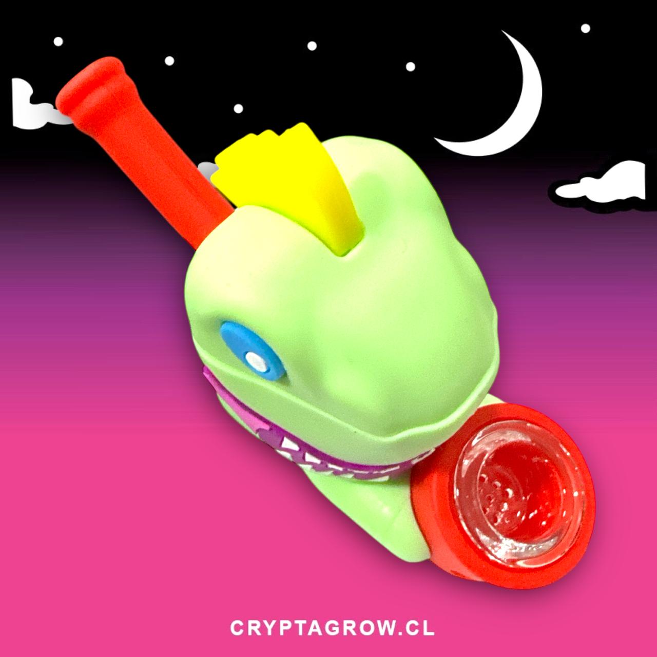 隆Potencia tus sesiones con estilo jur谩sico! Esta pipa combina la resistencia de la silicona con la pureza del vidrio, gracias a su quemador con rejilla integrada. Su dise帽o compacto y duradero la hace perfecta para llevar a todas partes. 隆Stock limitado! No te quedes sin la tuya.